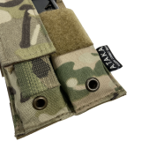 А.Т.А.К.А. Підсумок для двох пістолетних магазинів 2ПМ SOF MULTICAM - це універсальне рішення для тактичного спорядження, що забезпечує надійне та зручне зберігання магазинів пістолетів різних моделей, зокрема й варіанти зі збільшеною місткістю. Завдяки регульованому клапану, підсумок адаптується під різну висоту спорядження, а за необхідності клапани можна зняти.
